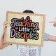 Teaching Little Disciples Christian Art - Faith-Based Teacher Wall art for Sunday School or Christian Educators, Rainbow Heart Design